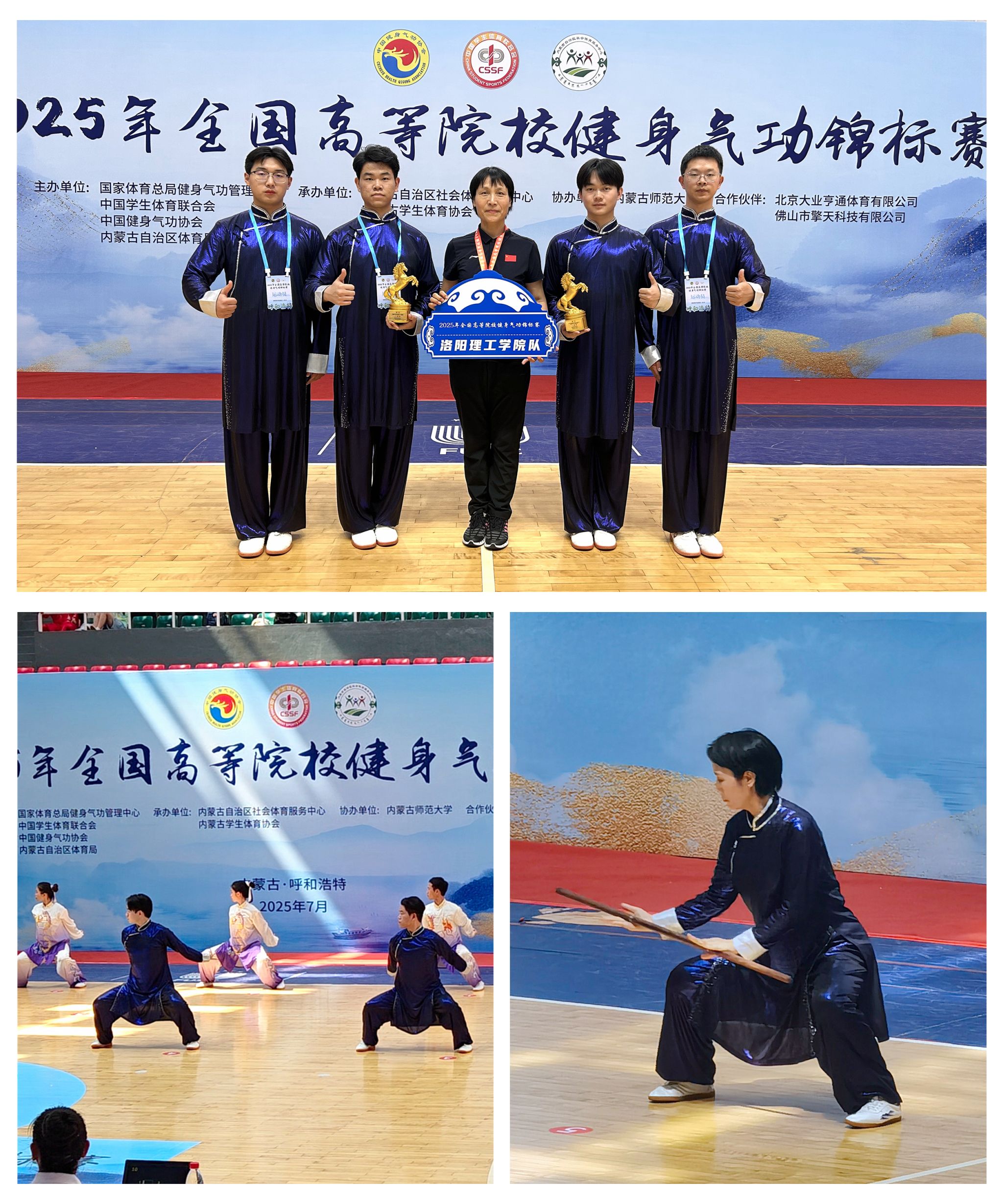 代表队4名运动员在体育教学部郑强芬老师的带领下,完美演绎了八段锦的刚柔相济与导引养生功十二法的圆活连贯,继2022年、2024年夺冠后再度包揽两项集体一等奖。同时,个人赛收获一等奖2项,二等奖2项。郑强芬老师兼运动员参加比赛,荣获女子教工组太极养生杖一等奖。
