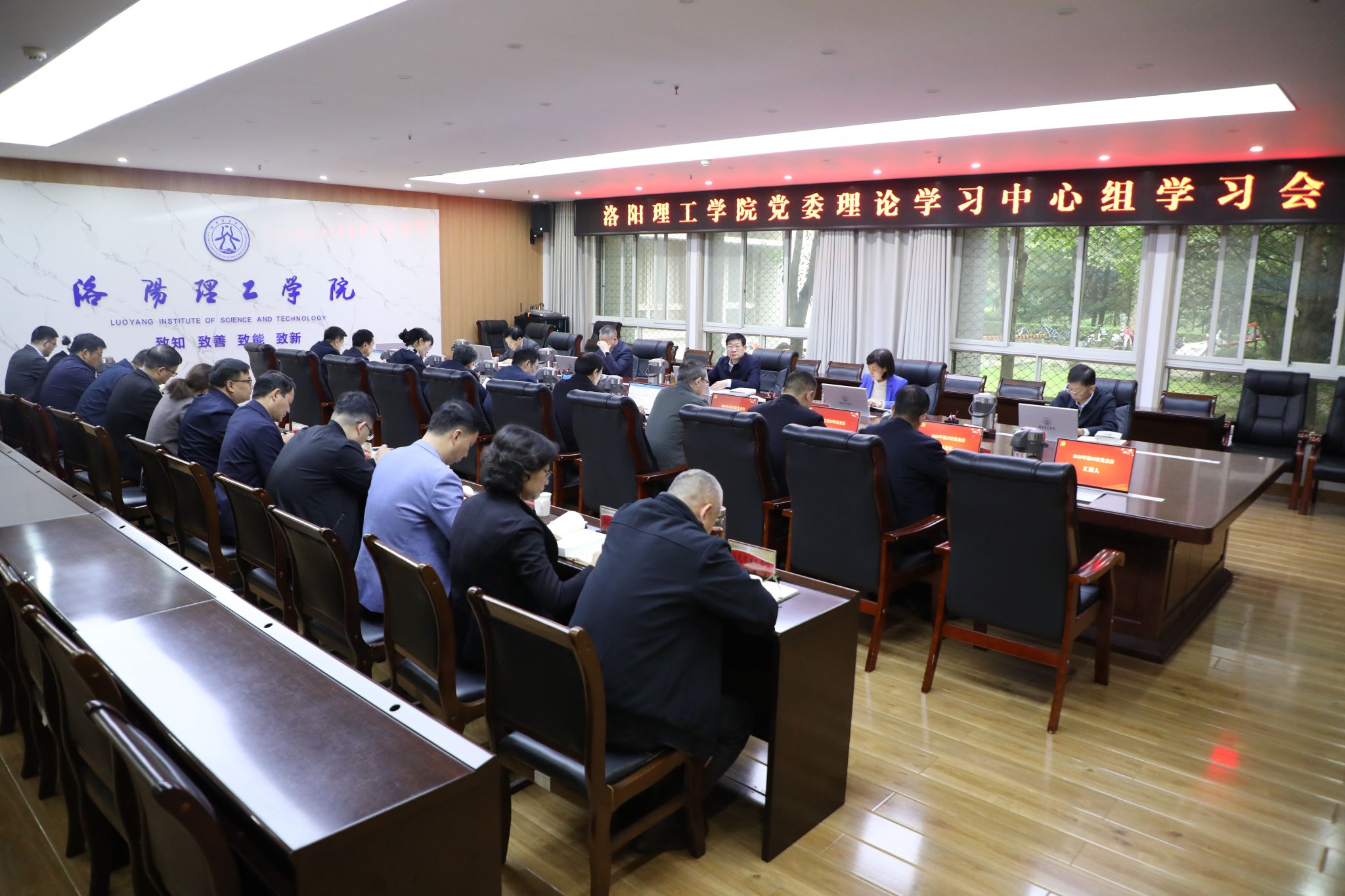 10月10日上午,校党委理论学习中心组举行集体学习研讨,深入学习领会《习近平谈治国理政》第五卷,自觉用党的创新理论武装头脑、指导实践、推动工作。党委书记卢志文主持会议并讲话。