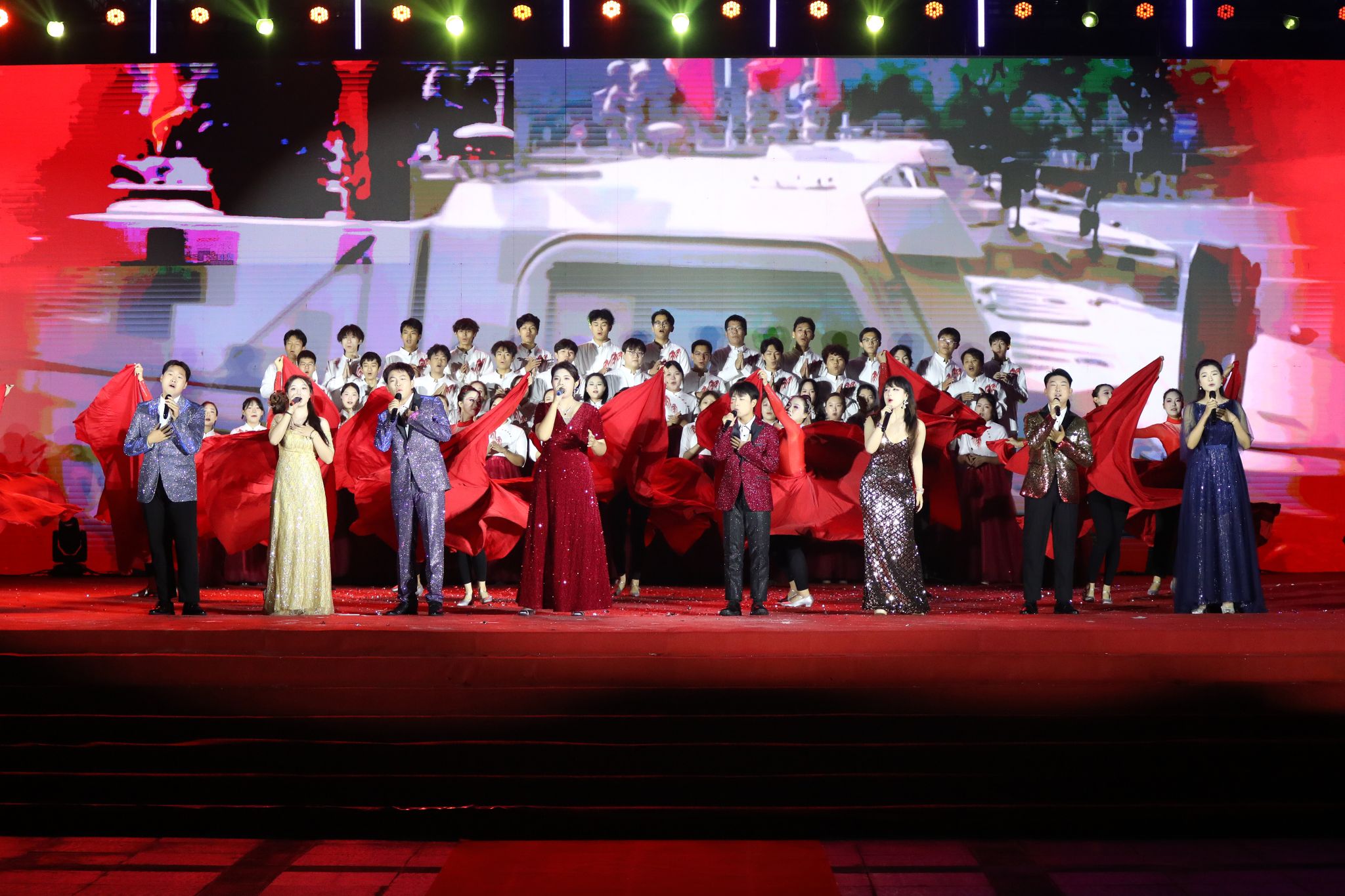 带来的歌剧选段《沂蒙山》,用高亢激昂的歌声再现革命岁月的热血与感动,厚植新生的家国情怀;大学生武术协会的变脸武术《火武乾坤》,将传统变脸技艺与武术动作相结合,刚柔并济间展现中华传统文化的博大精深。由校园十佳歌手、大学生合唱团与大学生舞蹈团共同演绎的歌曲《我爱你中国》将晚会推向高潮,嘹亮的歌声里满含对祖国的深情告白,也为本场晚会画上圆满句号。