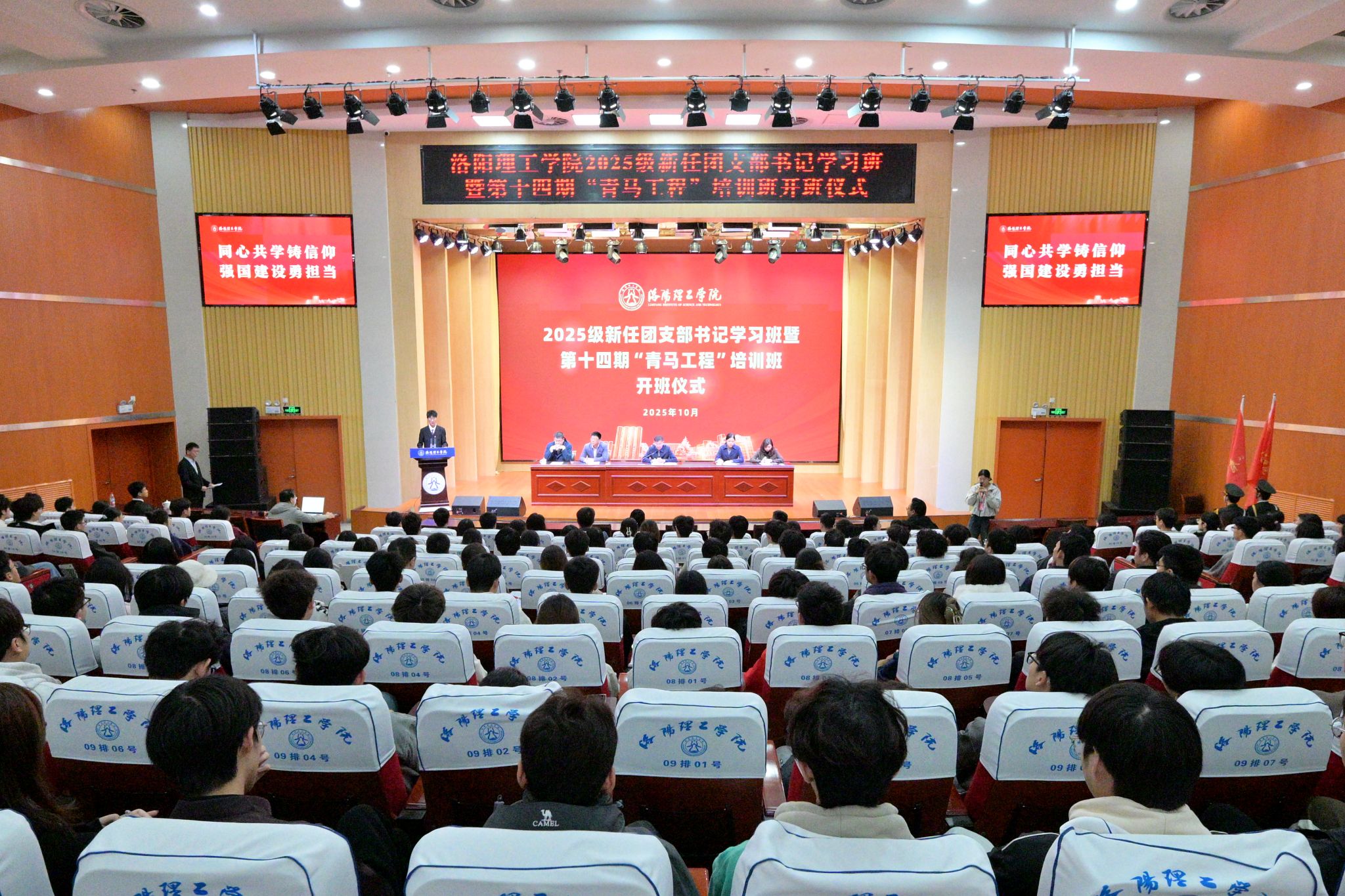 2025级新任团支部书记学习班暨第十四期“青马工程”培训班开班仪式在王城校区图书信息中心报告厅举行。党委副书记胡恩立出席开班仪式,党委宣传部、学生工作处、校团委等相关职能部门负责人,校院两级团委成员,2025级新任团支部书记、“青马工程”学员、灯塔研习社成员及学生骨干约600人参加。