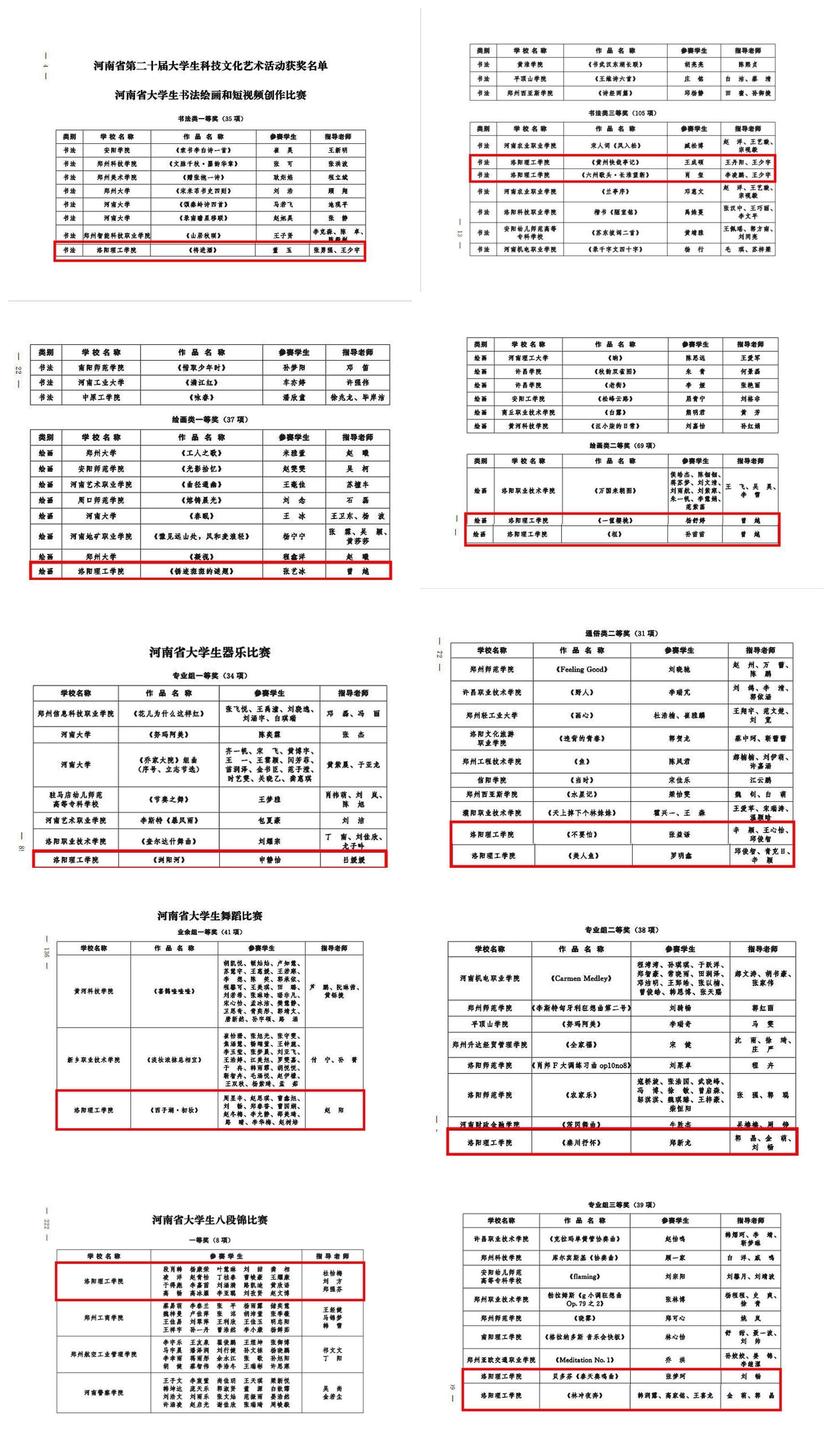 学子在本届艺术节各项比赛中表现出色,共收获书法大赛一等奖1项、三等奖2项;绘画大赛一等奖1项、二等奖2项;歌手大赛通俗组二等奖2项;器乐大赛专业组一等奖1项,二等奖1项,三等奖2项;舞蹈大赛业余组一等奖1项;八段锦比赛一等奖1项。