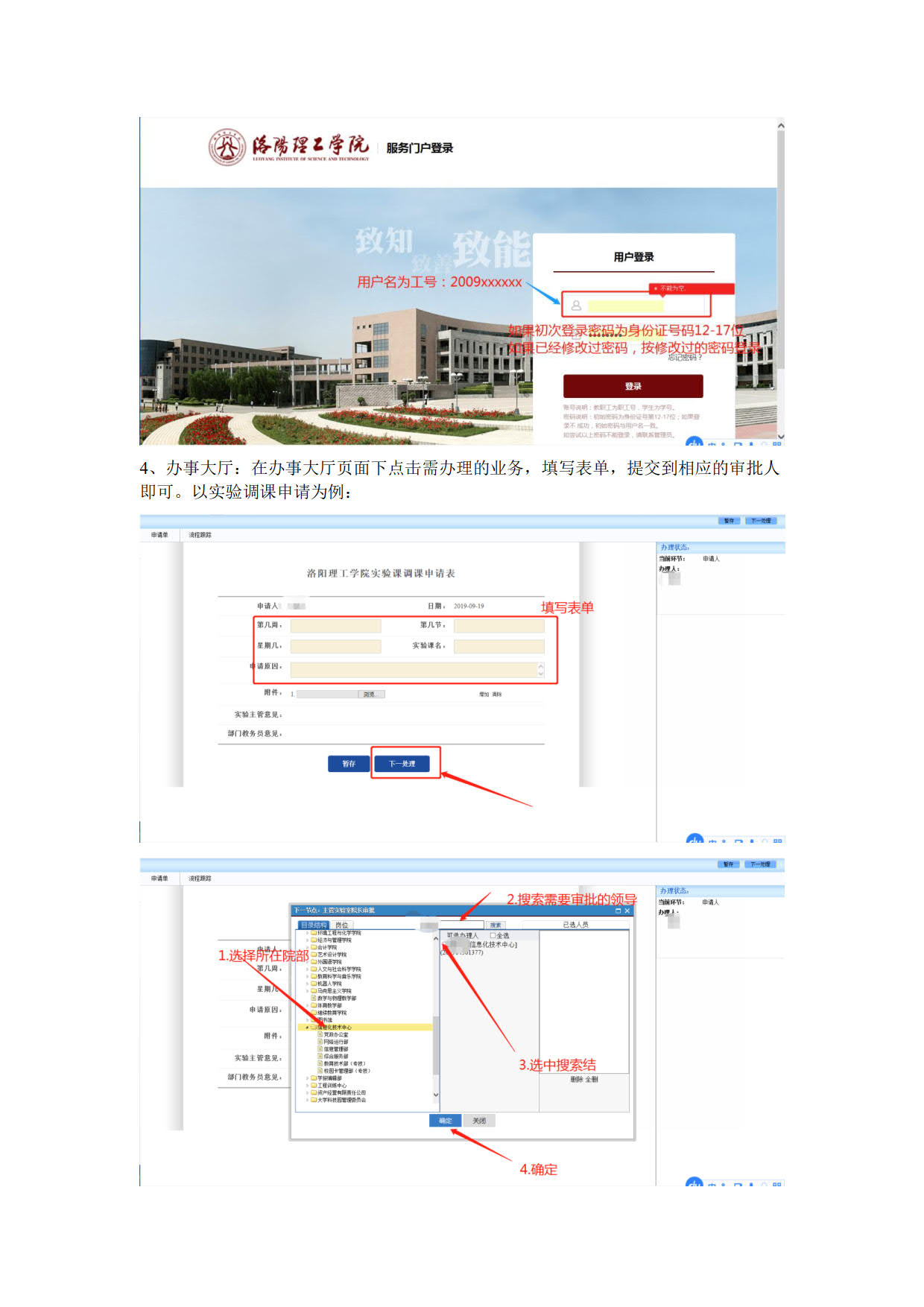 以用户为中心,对业务和服务进行了整合,推广线下业务向线上办理,用户分别以教师、学生和管理者三个不同身份登录后,可以线上办理与自身身份相关联的部分业务。如教师可办理理论课调课、实践课调整、教职工离校、邮箱密码重置、校园网入网等,学生可以办理休学申请、勤工助学、奖学金等30多项业务。目前,该功能广泛征求师生意见,在功能完善具备开通条件后再向全校推广使用,开通时间另行通知。