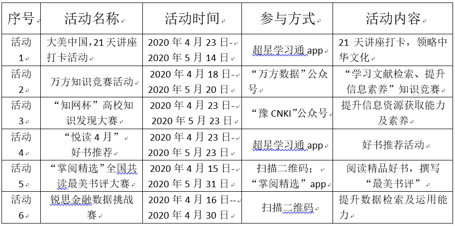 注:具体活动内容详见图书馆网站(//meigaomeient.com/tsg/)、图书馆微信公众号(lylg_tsg);