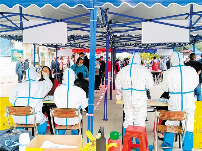志愿者需要在现场维持排队秩序,提醒参检人员佩戴口罩、保持2米间距。