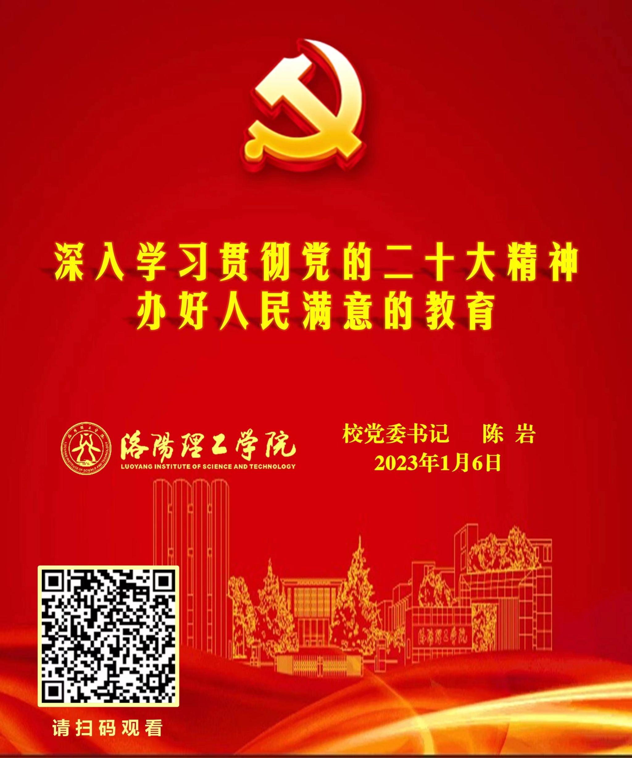 二、中层副职领导干部、科级干部;入选洛阳市市委宣讲团、洛阳市百姓宣讲团成员、洛阳市爱国主义报告团成员;思政课教师;辅导员;党员发展对象。通过网络直播方式参加培训。