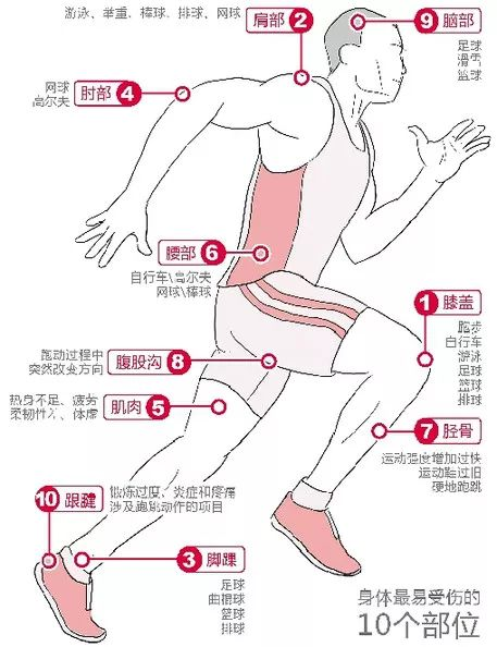 运动损伤是指在进行体育活动过程中产生的身体损伤。可能导致运动损伤的因素有很多,包括运动的场地环境、锻炼的负荷强度、个人的技术水平以及运动着装不合理、热身不充分等。那么,常见的运动损伤有哪些?如何预防?遇到运动损伤又该如何正确处理呢?