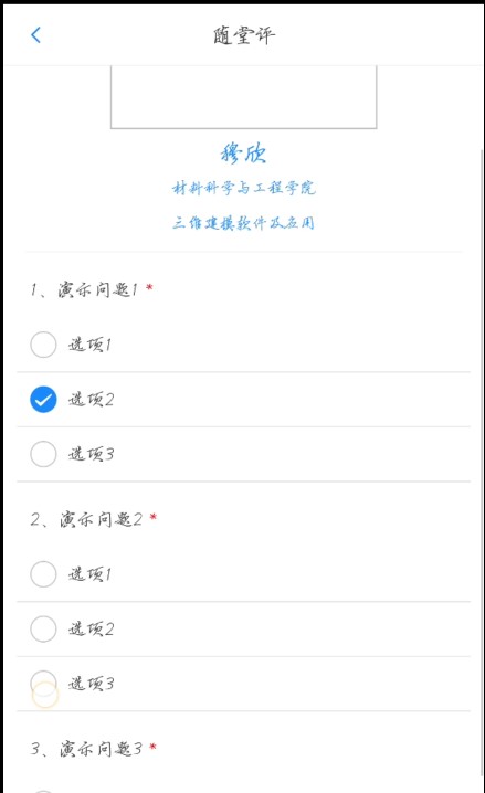 2.手机端点击“教学评价”,进入评教界面,包含评教师/评课程/问卷调查/随堂评,选择随堂评,点击右方评价,可进入教师评价界面,已经评价完成的数据可点击已评价查询评价结果,如下图: