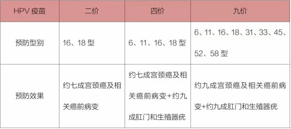 (一)二价、四价、九价HPV疫苗(宫颈癌疫苗)