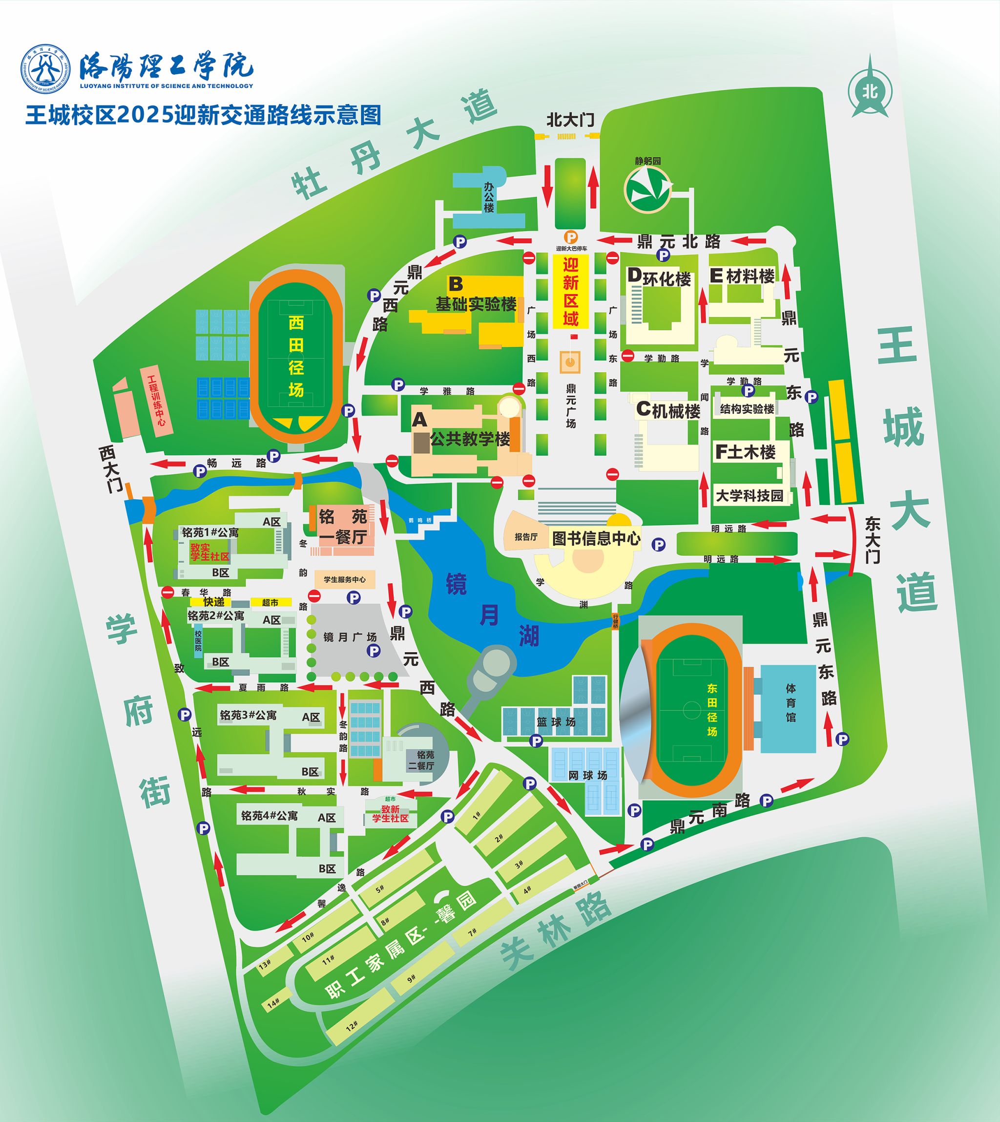 王城校区:东门、北门机动车均可进出,西门机动车只出不进,校内环路实行单向行驶,禁止逆行。