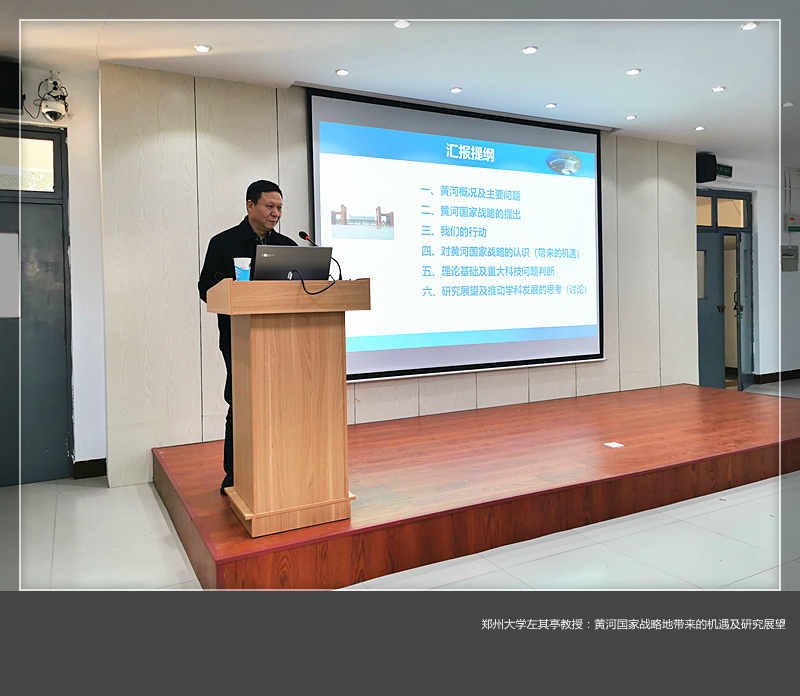 左其亭教授从黄河流域的概况及主要问题、黄河国家战略的提出、对黄河国家战略的认识及带来的机遇、理论基础及重大科技问题判断、研究展望及推动学科发展的思考和讨论等几个方面全面阐述了黄河流域生态保护和高质量发展与机遇。左教授谈到,黄河流域生态保护和高质量发展,同京津冀协同发展、长江经济带发展、粤港澳大湾区建设、长三角一体化发展一样,是重大国家战略。黄河流域生态保护和高质量发展国家战略的提出,意义重大,尤其对于黄河中下游中心城市洛阳来说是千载难逢的机遇。