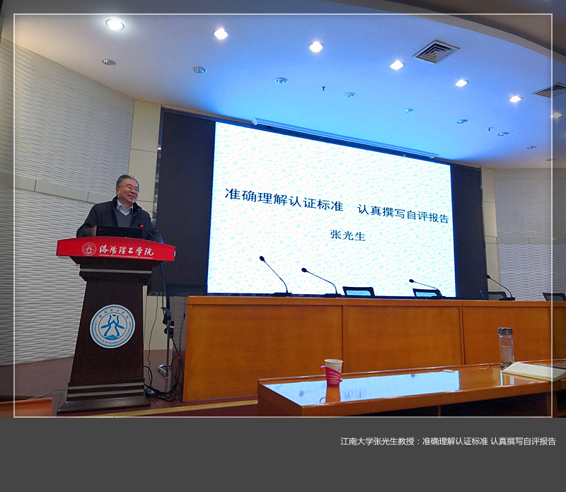 张光生教授从“学生、培养目标、毕业要求、持续改进、课程体系、师资队伍、支持条件”七个方面对通用标准进行深刻解读,对应工程教育认证理念进行逐条分析,面对全体学生产出导向和能力培养如何进行表述、求解、推演分析、获得结论等进行深入剖析。面对专业自评报告中对应七个方面如何将制度体系、过程管理,成果导向和持续改进等形成闭环促进专业自省和持续发展进行了深入说明,并强调专家面对自评报告考查的重点方向,进一步阐述了报告撰写过程中常见的问题。并以江南大学在一流学科建设的举措、环境工程专业工程教育认证过程的经验与大家进行深度交流。