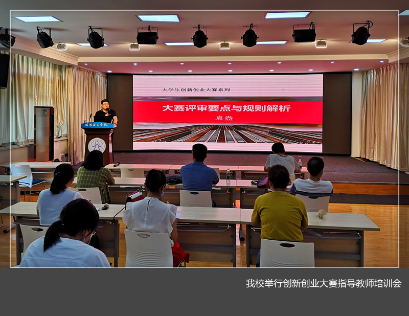 邀请河南科诚科技发展有限公司总经理、“互联网+”大赛国赛评委袁盎到校做了专题讲座,70余名指导教师参加了培训。