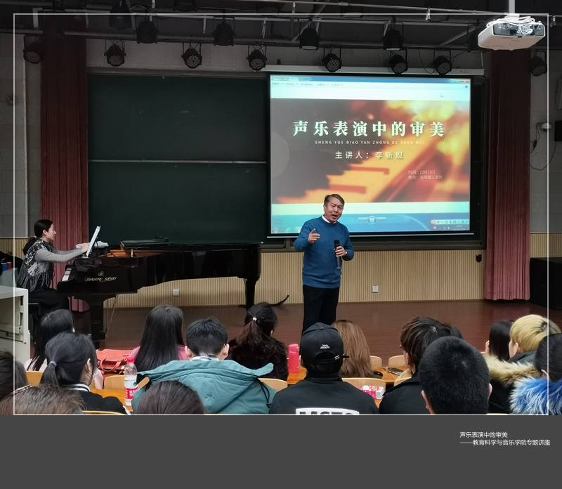 院长李新现教授在XF108演出剧场举办《声乐表演中的审美》专题学术讲座,音乐系师生聆听了此次讲座。