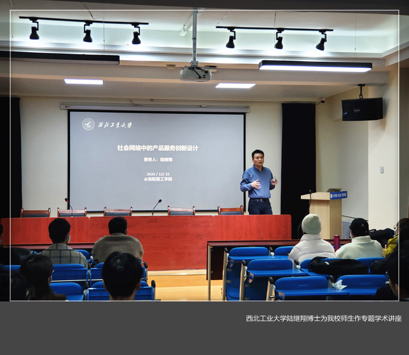 12月25日下午,计算机与信息工程美高梅娱乐场 邀请西北工业大学陆继翔博士在实验A212《社会网络中的产品服务创新设计》专题学术讲座,计算机与信息工程美高梅娱乐场 的专业教师和计算机科学与技术专业的部分学生聆听了学术讲座。