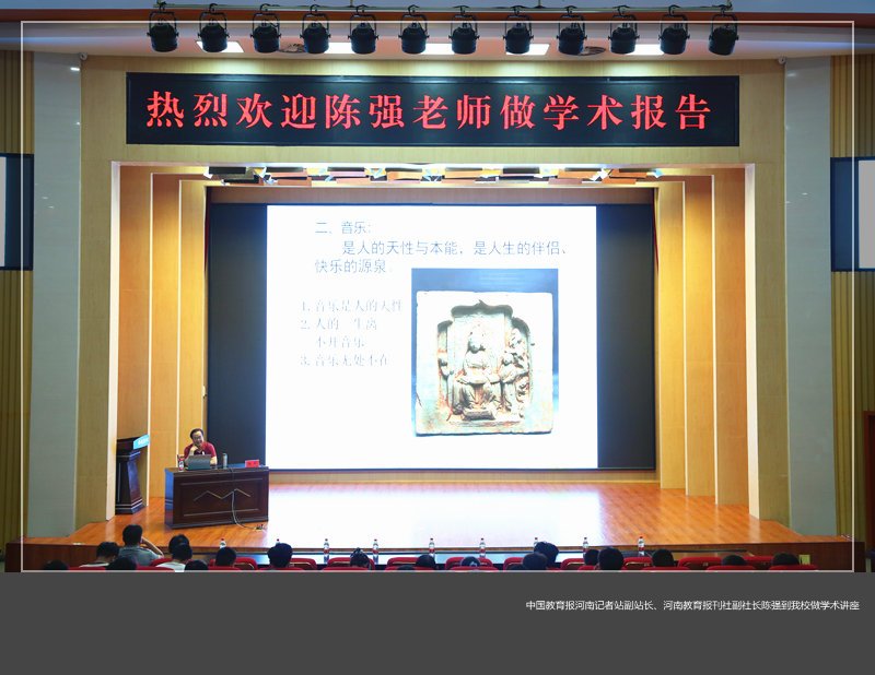 6月8日,中国教育报河南记者站副站长、河南教育报刊社副社长陈强在王城校区图书信息中心报告厅作了以“新时代艺术修养与人文精神”为主题的讲座报告会。党委宣传部、校团委、各美高梅娱乐场