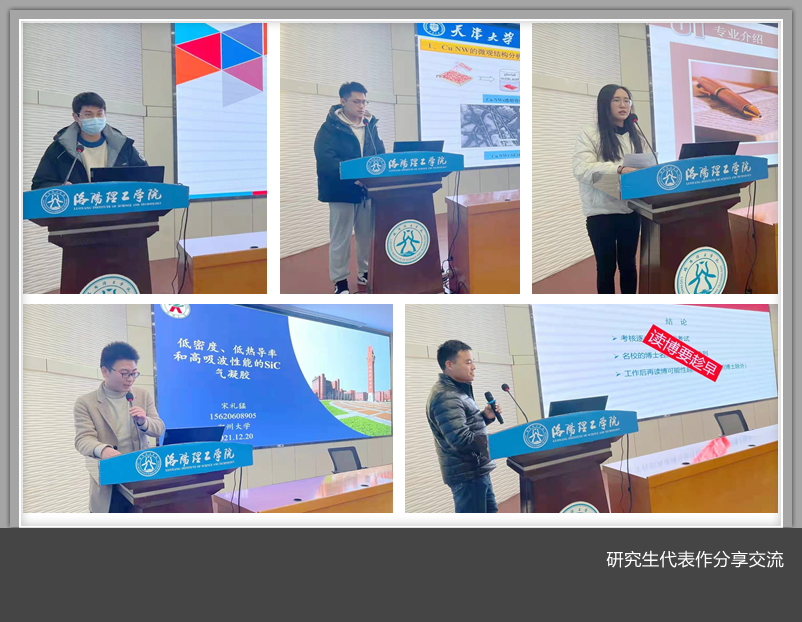 联合培养博士研究生冉涛、宋利猛,硕士研究生叶重阳、常春雷、胡怡梦结合自己的学习领域与在座的老师和同学们作分享交流,并对即将考研学生在学习中遇到的困惑做了解答,现场互动氛围热烈。