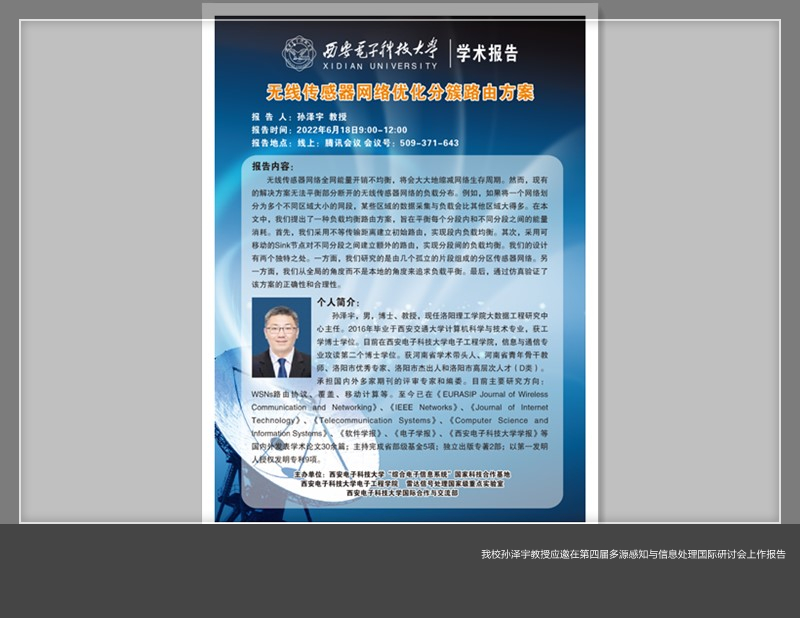 孙泽宇教授应西安电子科技大学电子工程美高梅娱乐场