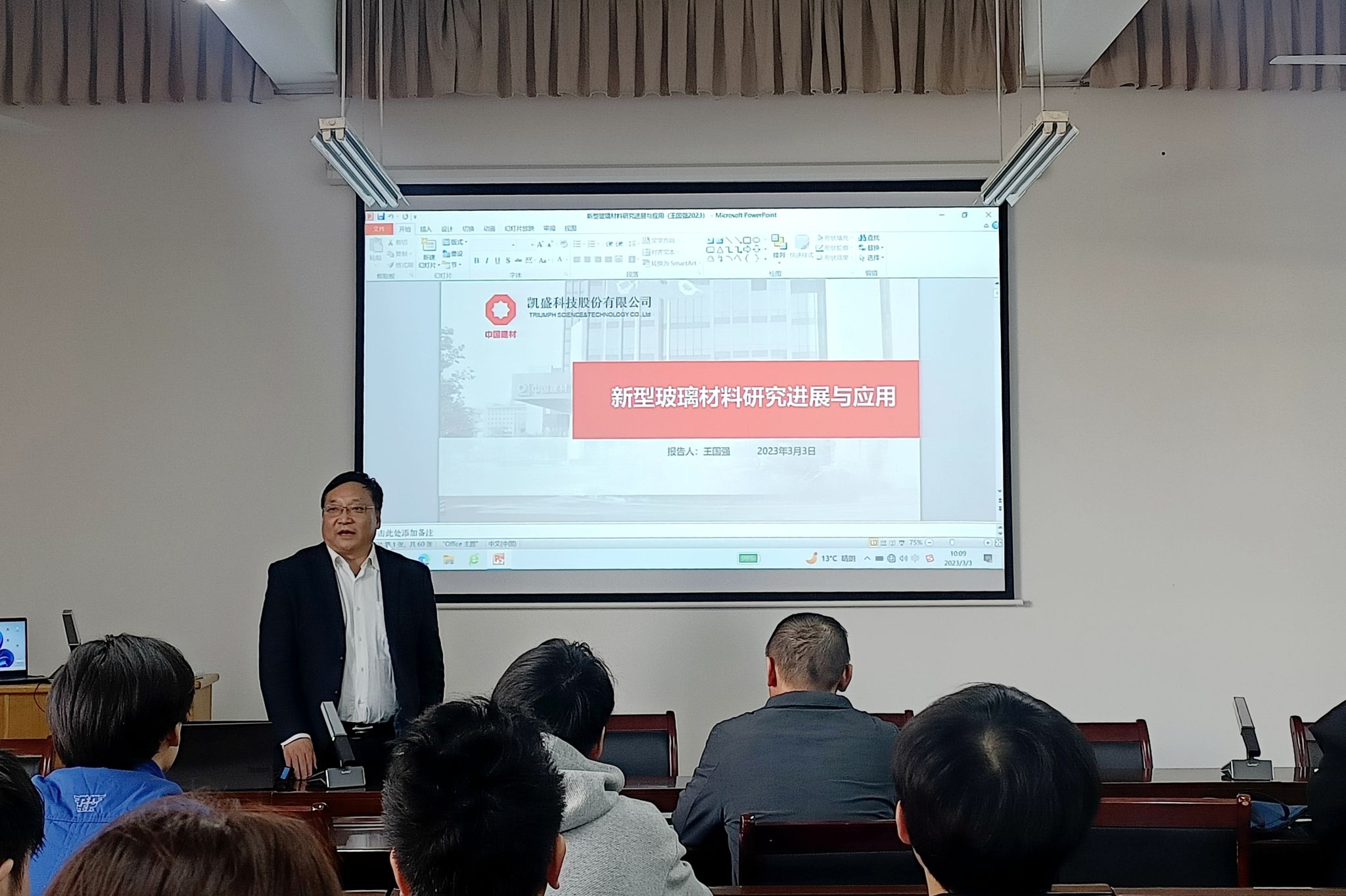 凯盛科技股份有限公司副总经理王国强《新型玻璃材料研究与应用》学术报告会现场