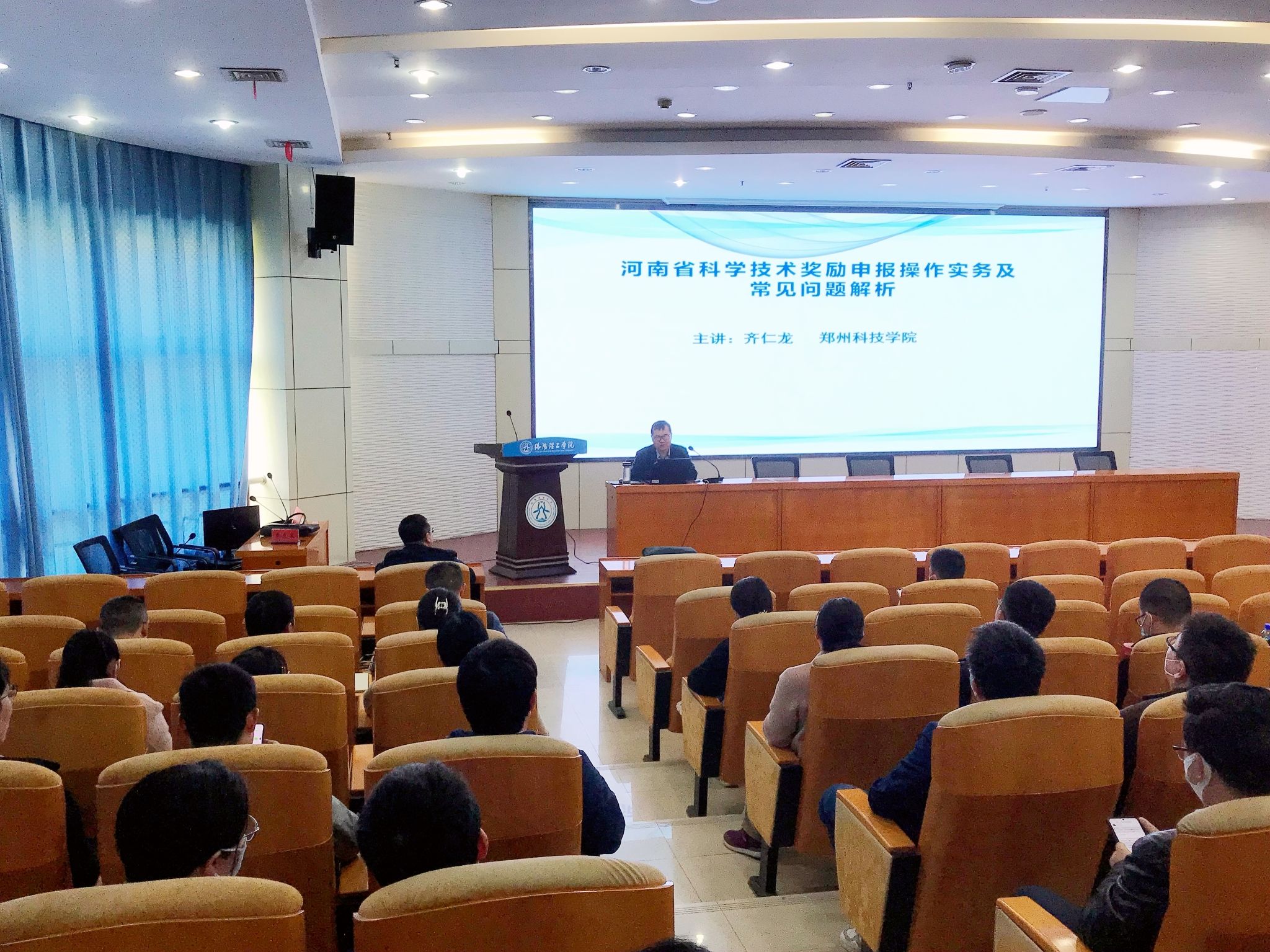 齐仁龙教授作《河南省科学技术奖励申报操作实务及常见问题解析》专题报告,报告会在王城校区办公楼二楼报告厅举行,自然科美高梅娱乐场