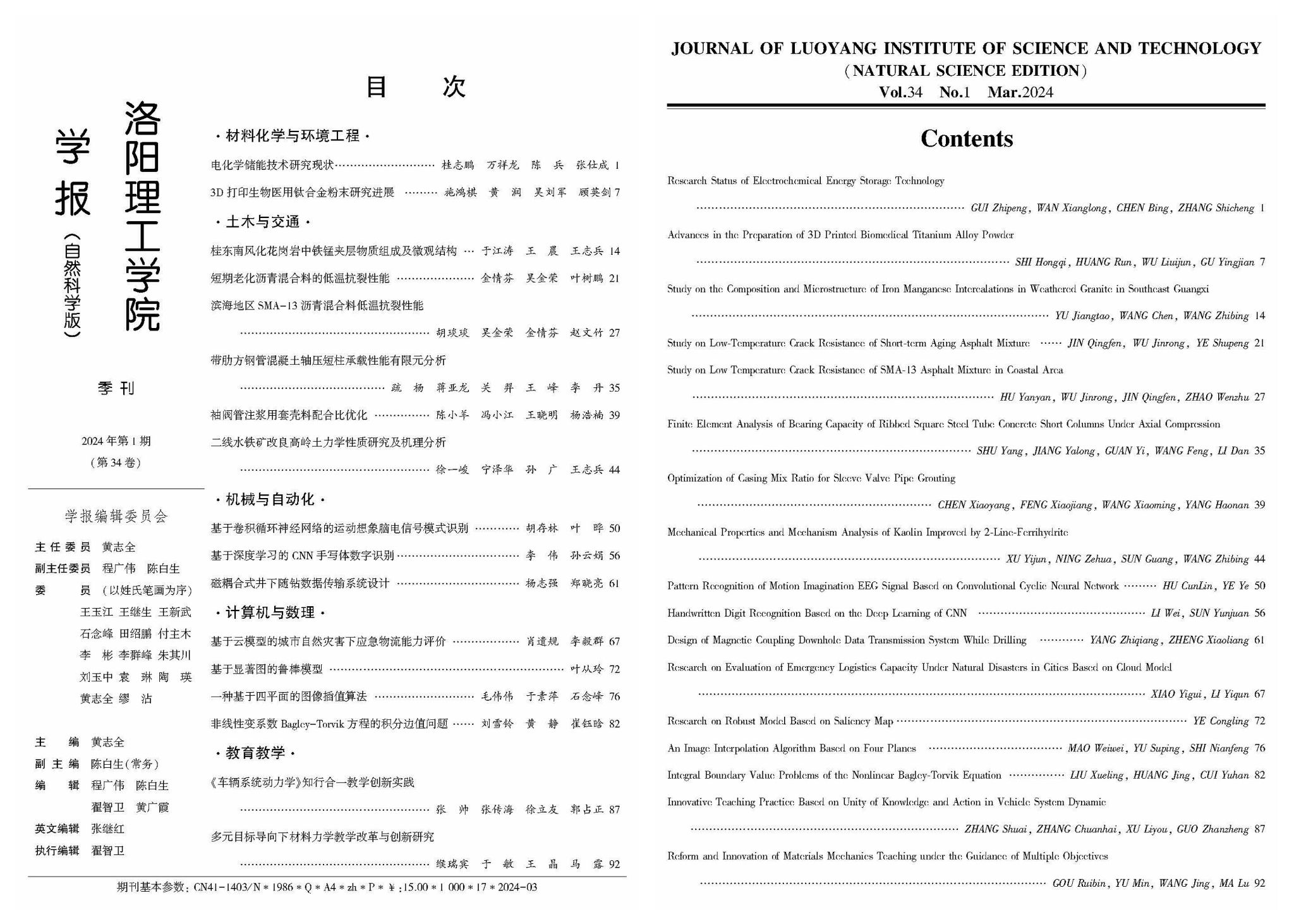 学报(自然科学版)》2024年第1期目次