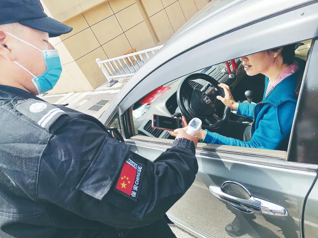 值班的每一位老师,在校门口检测体温并出示手机电子通行证后,很快就会被放行进入校园,整个过程用时不到一分钟,安全高效。