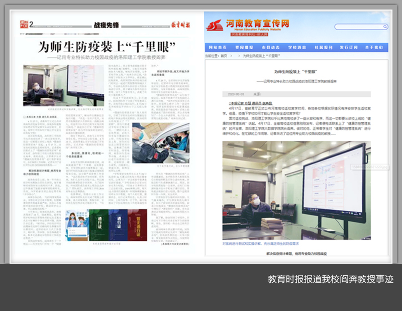 5月1日出版的《教育时报》第2版“战疫先锋”以《为师生防疫装上“千里眼”——记用专业特长助力校园战疫的美高梅娱乐场