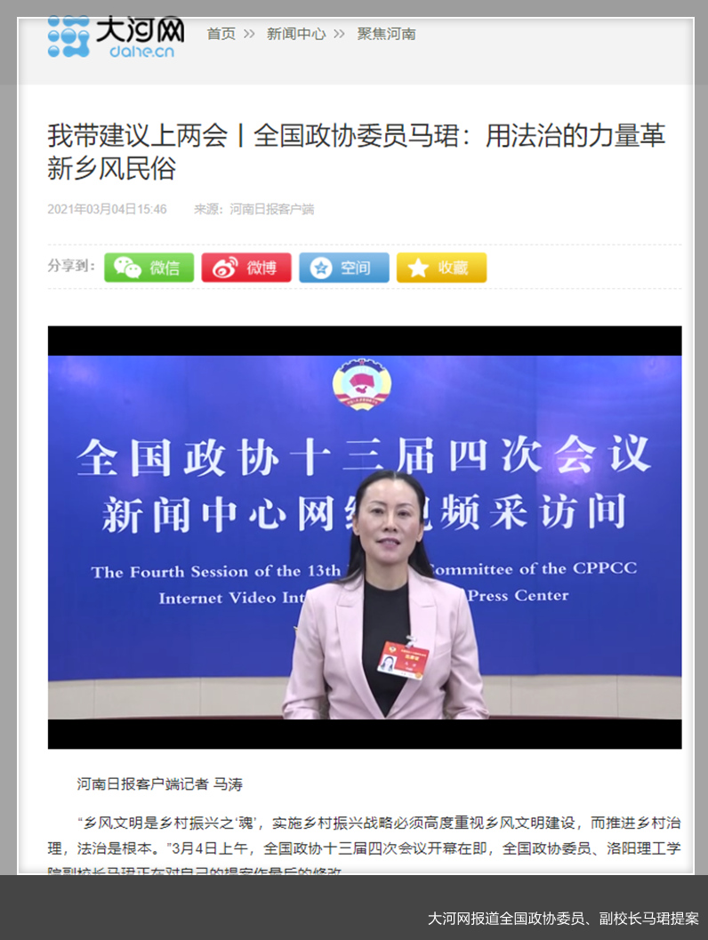 3月4日,河南日报以《我带建议上两会丨全国政协委员马珺:用法治的力量革新乡风民俗》为题刊发专题报道。