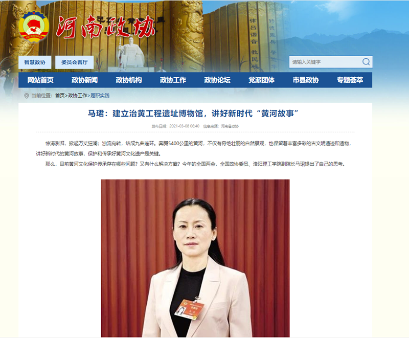 3月7日,大河报以《全国政协委员马珺:建立治黄工程遗址博物馆讲好新时代“黄河故事”》为题进行专题报道。河南省政协网等予以转载刊发。