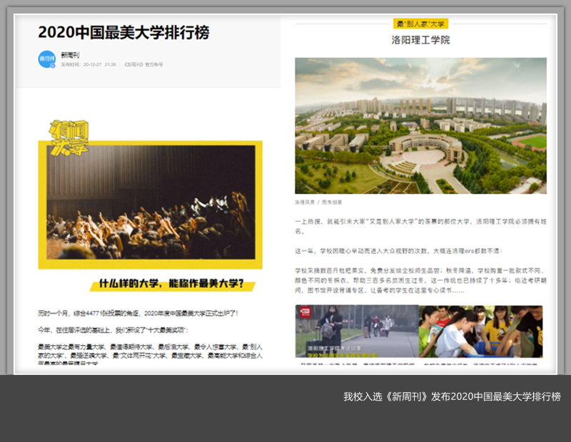12月25日,新周刊发布2020中国最美大学排行榜,美高梅娱乐场 获选年度最“别人家”大学。