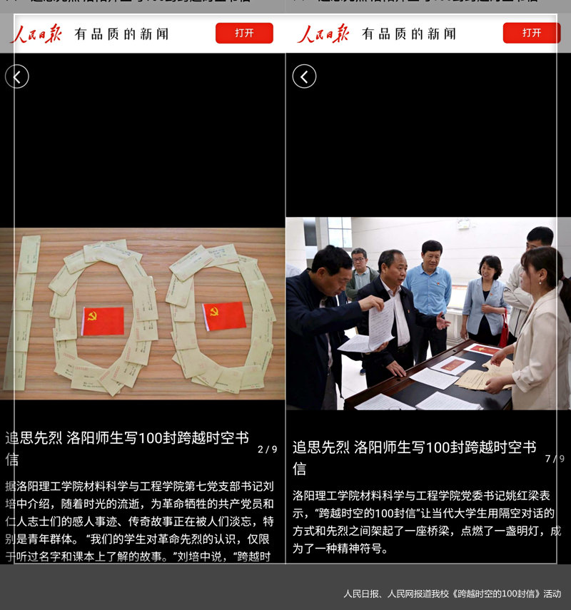 1 人民日报 追思先烈 洛阳师生写100封跨越时空书信 //wap.peopleapp.com/atlas/6219157