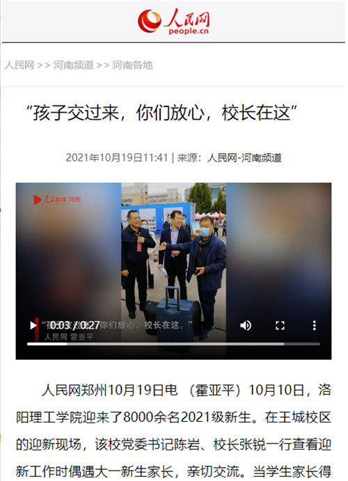 10月19日,人民网以《“孩子交过来,你们放心,校长在这”》为题,报道美高梅娱乐场 迎新期间的暖心瞬间。