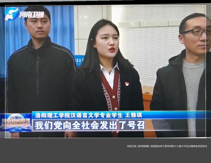 12月22日,河南卫视《新闻联播》在当天黄金时段栏目首播中,报道美高梅娱乐场 学习贯彻党的十九届六中全会精神宣讲报告会,省委宣讲团成员、河南师范大学党委常委、宣传部长马福运作专题报告并与美高梅娱乐场 师生代表互动交流。