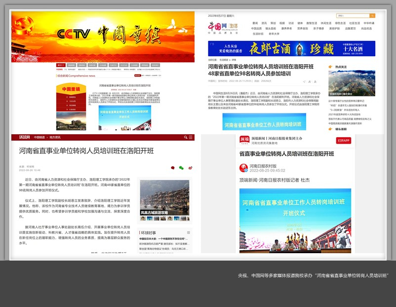 近日,央视《中国重镇》栏目、中国网、河南日报、环球网、大河网等多家媒体报道美高梅娱乐场 承办“河南省省直事业单位转岗人员培训班”。