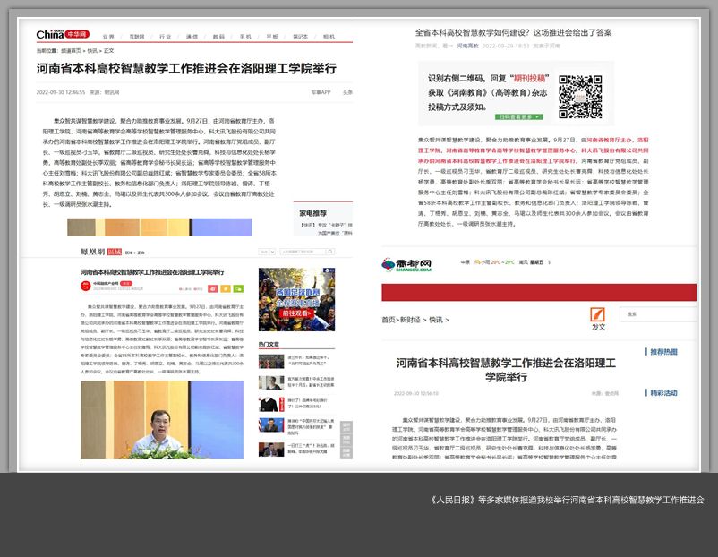 9月29日、30日,《人民日报》河南高教版块、中国网海丝频道、中华网、河南高教官方公众号、凤凰网、商都网等多家媒体平台纷纷报道了美高梅娱乐场 举行河南省本科高校智慧教学工作推进会。