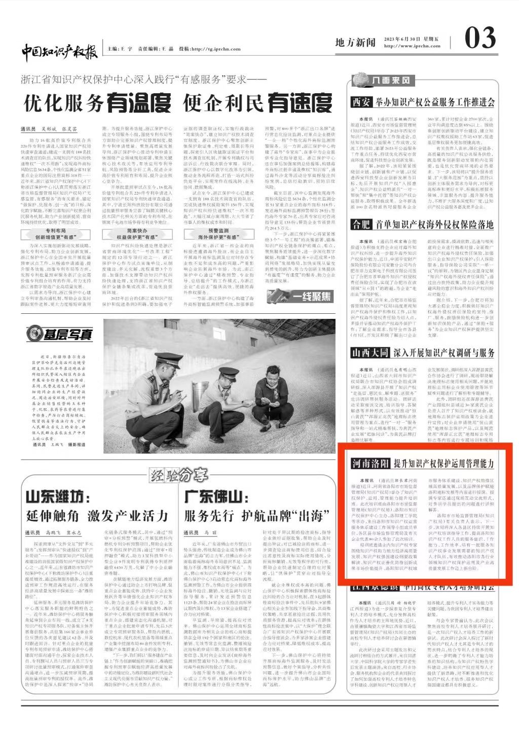《中国知识产权报》第2404期第03版“地方新闻”《河南洛阳 提升知识产权保护运用管理能力》: