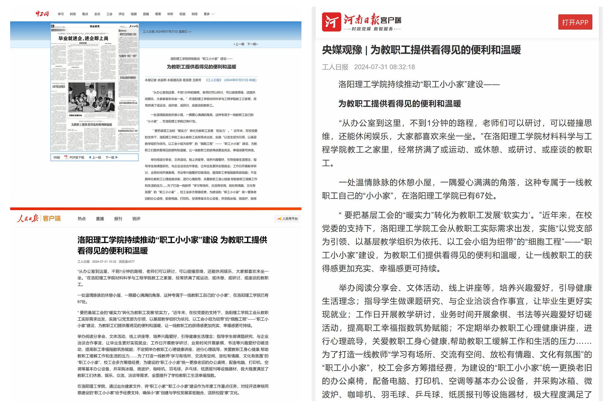 7月31日,《工人日报》在当天出版的报纸第06版及中工网、人民日报客户端、河南日报客户端等,以《美高梅娱乐场