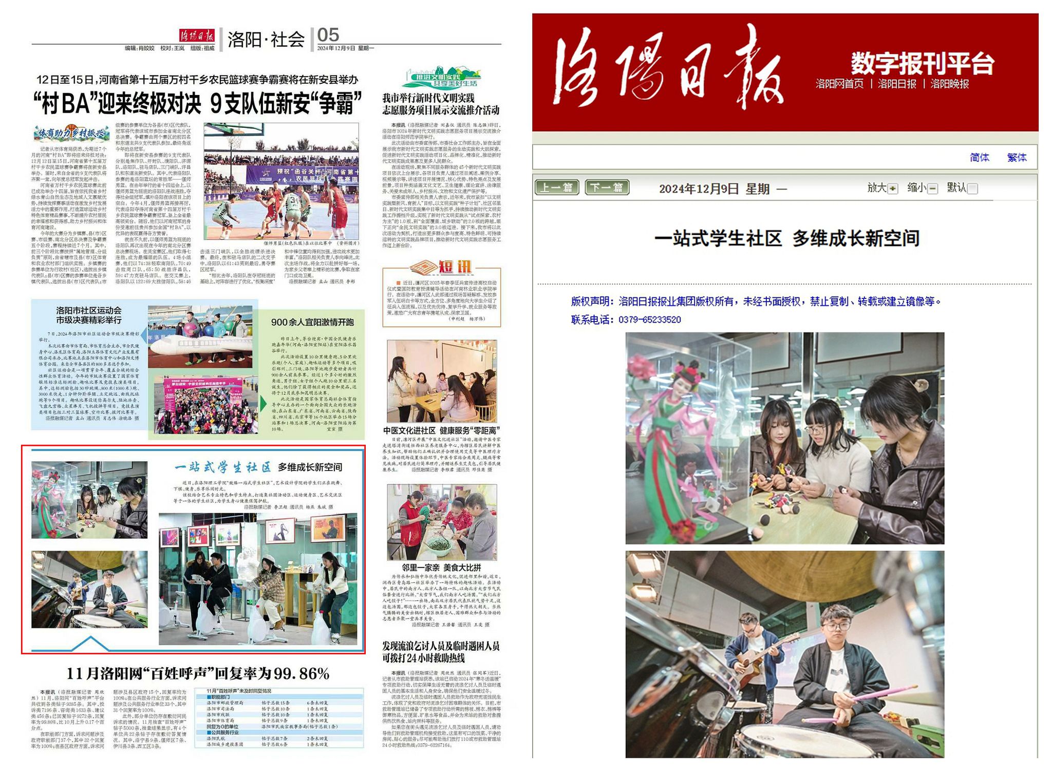 《洛阳日报》2024年12月9日第005版,《一站式学生社区 多维成长新空间》