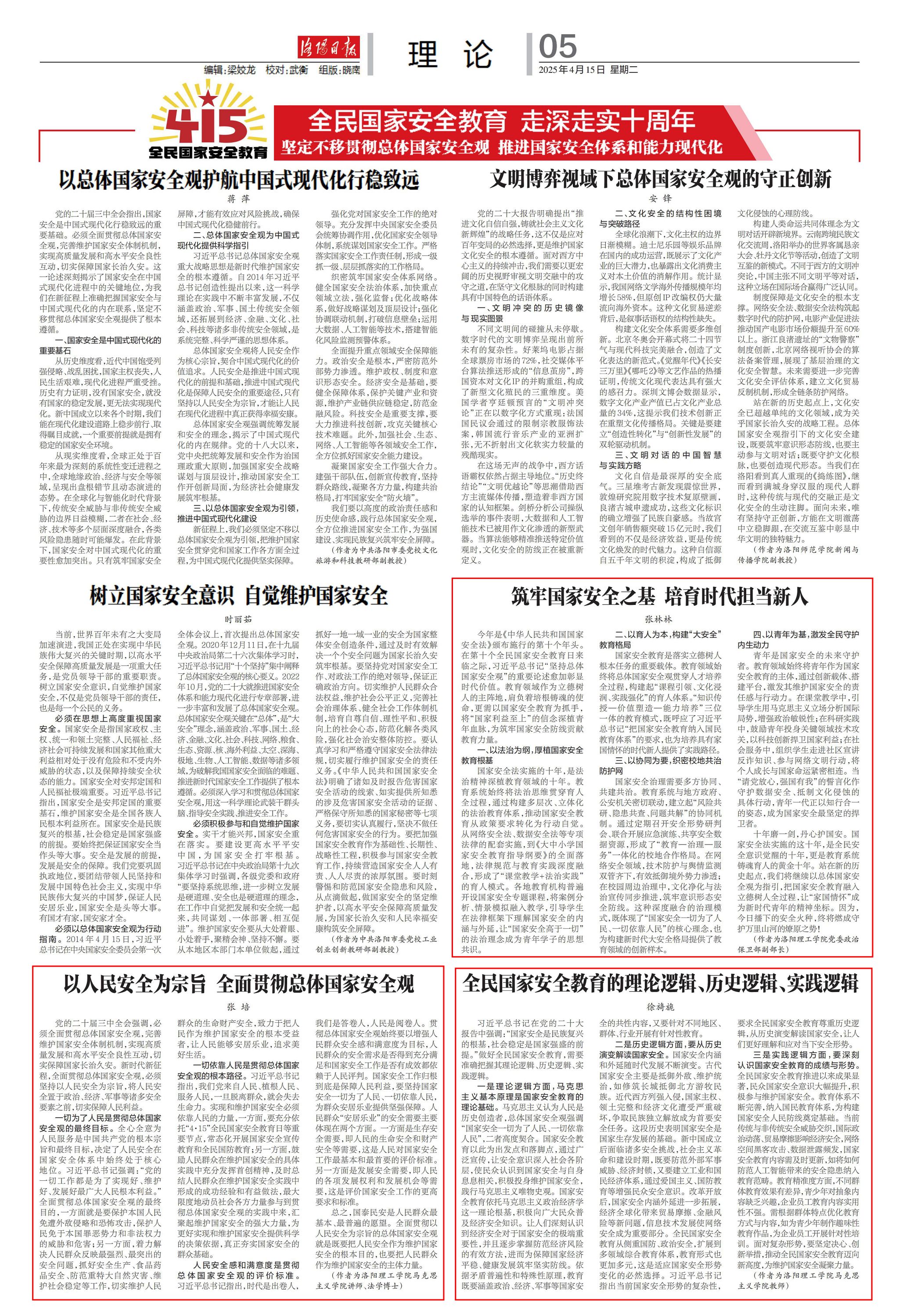 1.《洛阳日报》2025年4月15日第05理论版,《筑牢国家安全之基 培育时代担当新人》