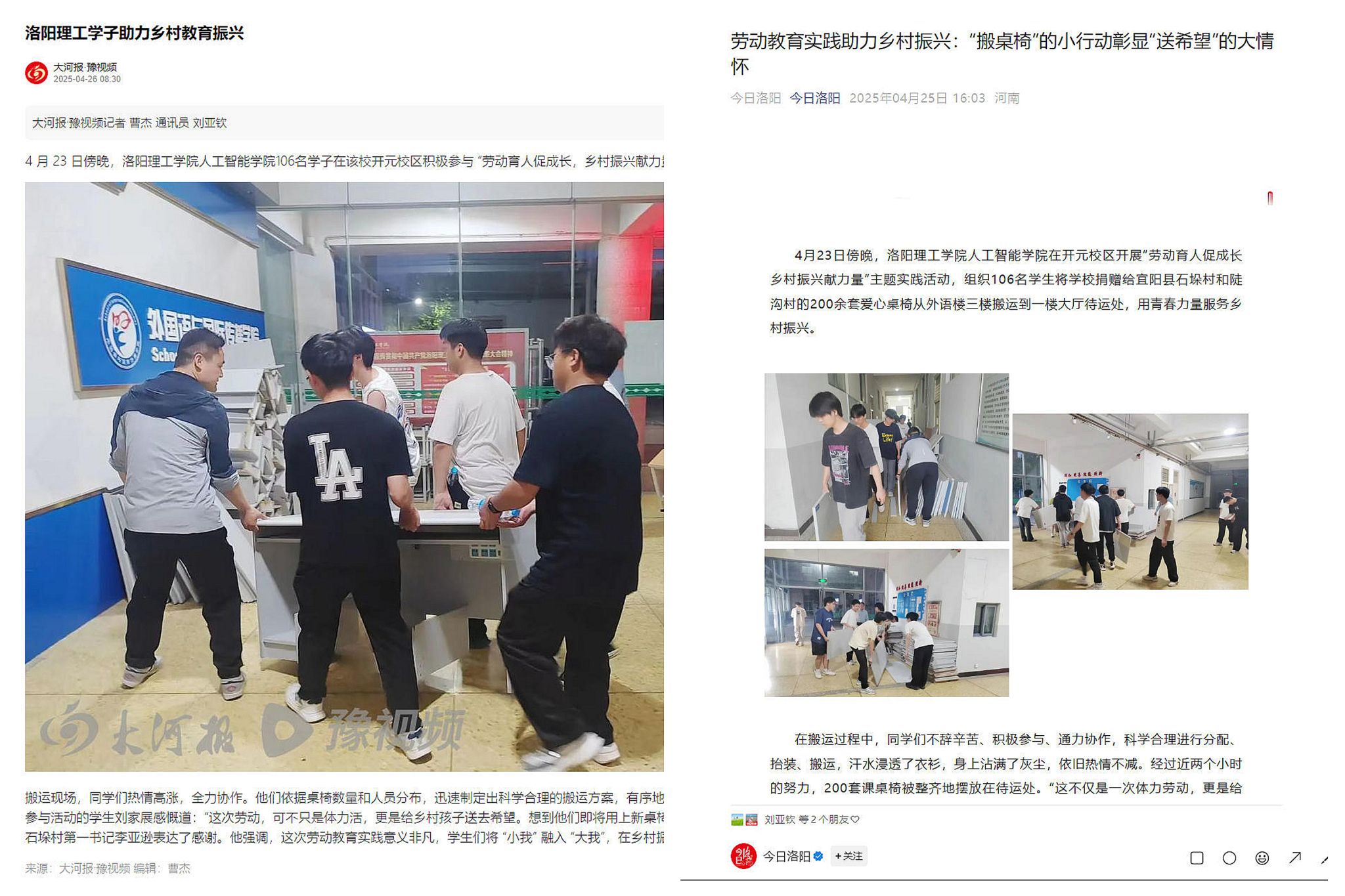 2.今日洛阳,2025年4月25日,《劳动教育实践助力乡村振兴:“搬桌椅”的小行动彰显“送希望”的大情怀》
