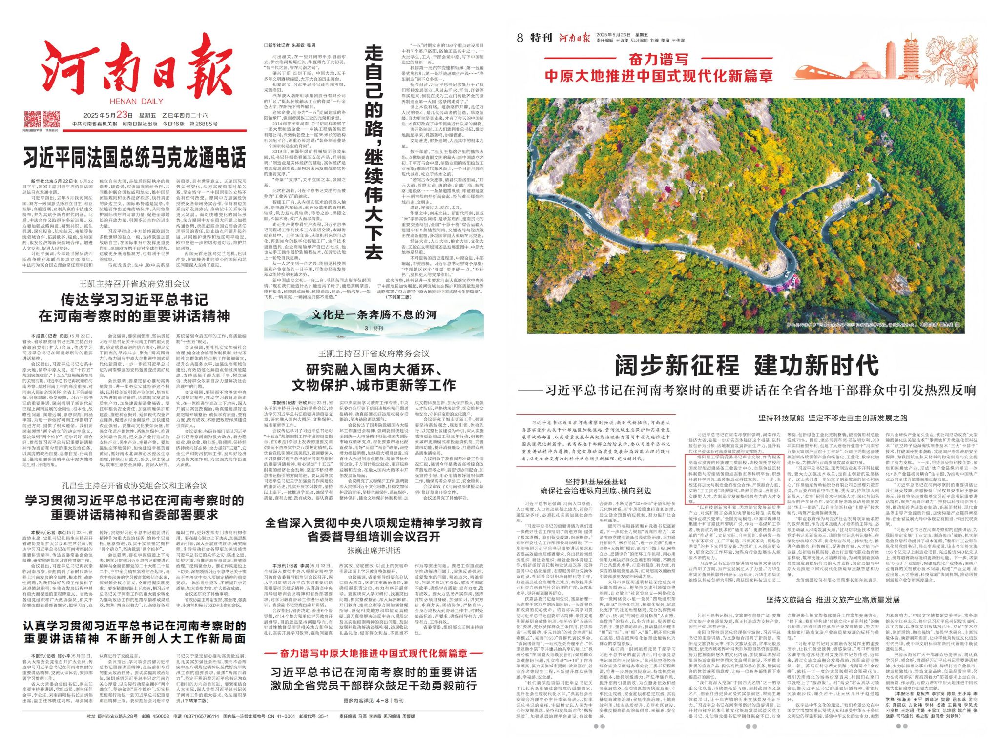 5月23日出版的《河南日报》报道版面