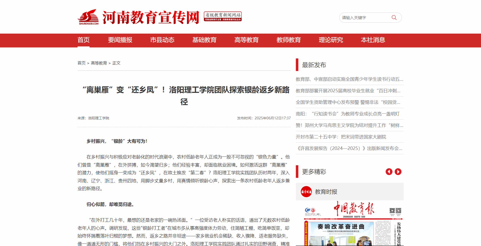 河南教育宣传网,2025年6月12日,《“离巢雁”变“还乡凤”!美高梅娱乐场