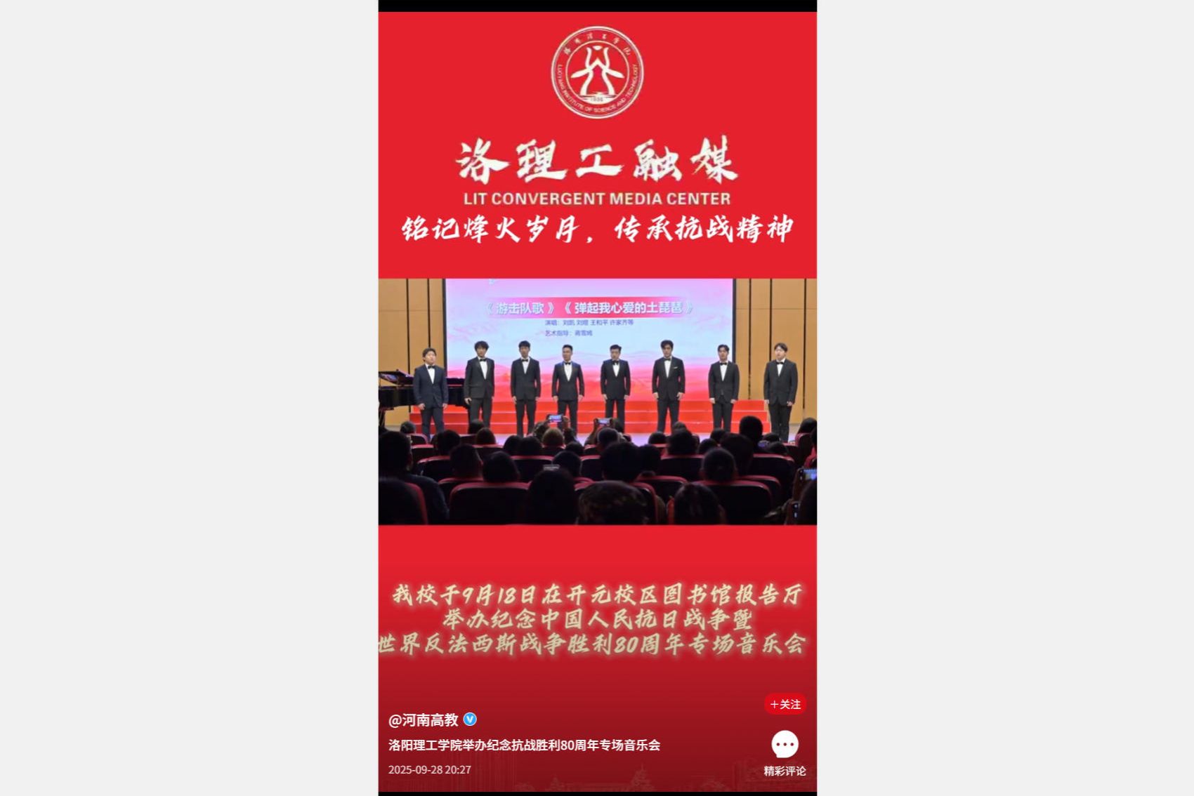 举办纪念抗战胜利80周年专场音乐会》