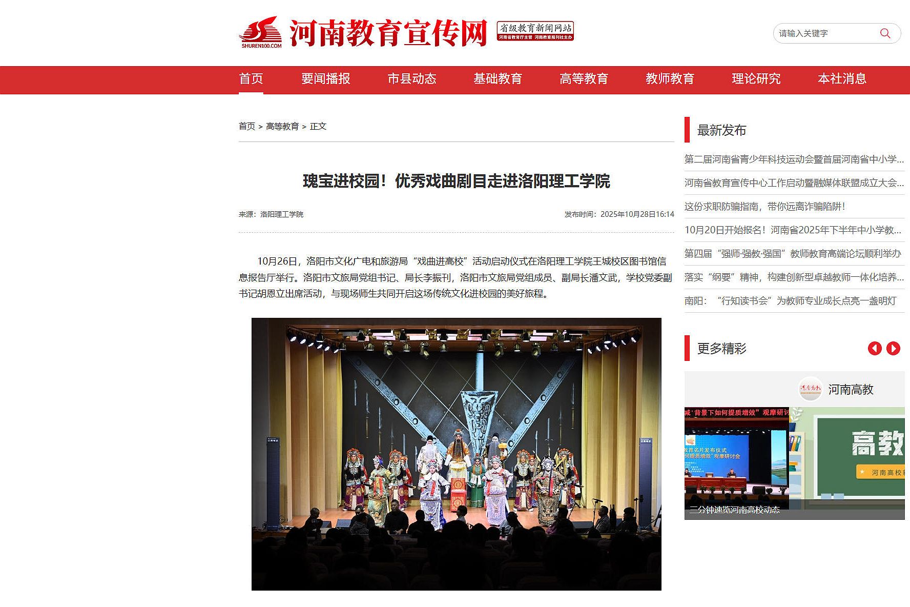 2.河南教育宣传网,2025年10月28日,《瑰宝进校园!优秀戏曲剧目走进美高梅娱乐场