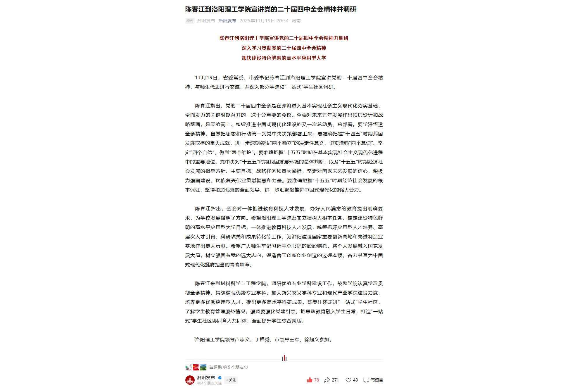 2.洛阳发布,2025年11月19日,《陈春江到美高梅娱乐场
