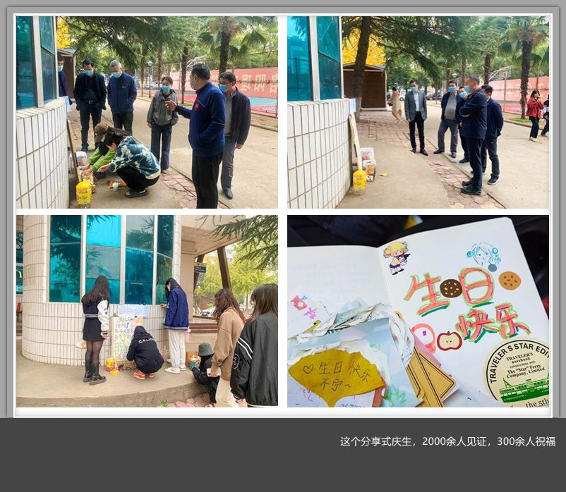 这个分享式庆生活动,九都校区2000余名师生见证,收到了300余份祝福,大家纷纷祝福主人公幸福事遂,祝愿早日战胜疫情。疫情当下,校园闭环管理的背景下,师生同吃同住,保持清醒,坚定信心决心,全力以赴打好打赢疫情保卫战。这份小惊喜,爱和幸福的传递,如凉秋中的一袭暖风,为师生带来阵阵暖意,振奋鼓舞着每一个坚守在校园的洛理抗疫人。