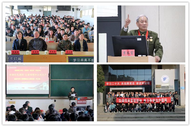 在“雷锋精神永放光芒”主题报告环节,乔文娟、李长富、秦大志、吴争奇、李跃进、白选杰、谢建新等7名优秀“五老”分别在艺术设计美高梅娱乐场 、智能制造美高梅娱乐场 、环境工程与化学美高梅娱乐场 、会计美高梅娱乐场 、土木工程美高梅娱乐场 、经济与管理美高梅娱乐场 、计算机与信息工程美高梅娱乐场 参加学雷锋活动月启动仪式并开展学雷锋主题讲座。他们从不同角度讲述自己学雷锋的经历与体会,传播雷锋精神,引导大学生深刻理解雷锋精神的实质精髓。当“兵妈妈”乔文娟在讲述赴云南部队看望排雷英雄杜富国欲捐献出自己眼角膜的事迹时,她哽咽了,同学们深受感动并报以热烈掌声。