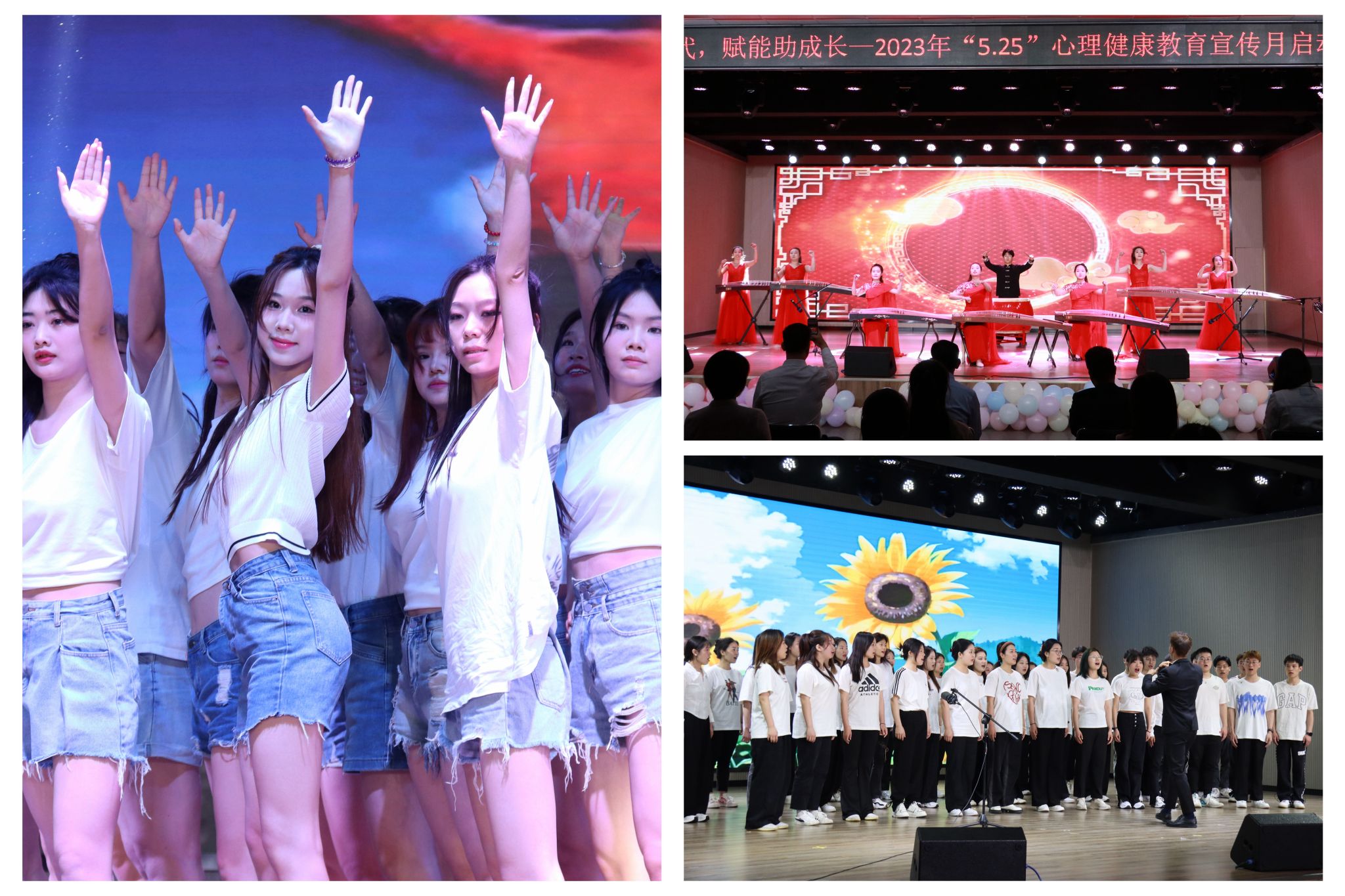 民乐表演《盛世国乐》恢弘大气、减压操表演《舞动青春》节奏明快,展现了洛理工学子的青春风貌。歌曲合唱《萱草花》让现场观众沉浸在美妙的歌声中,忘却烦恼,拥抱美好生活。