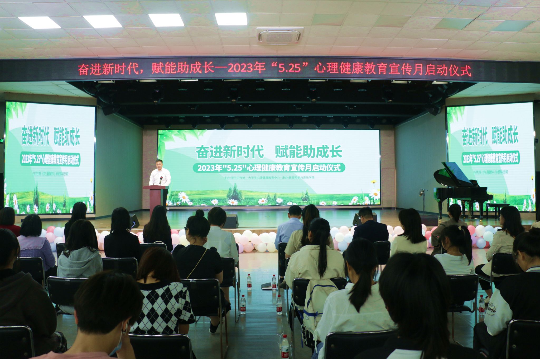学生工作处负责人宣读了“5•25”心理健康教育宣传月活动安排,鼓励同学们积极参与宣传月的各项主题教育活动,树立健康理念、展现青春风貌,弘扬迈进新征程、奋进新时代的精神力量。