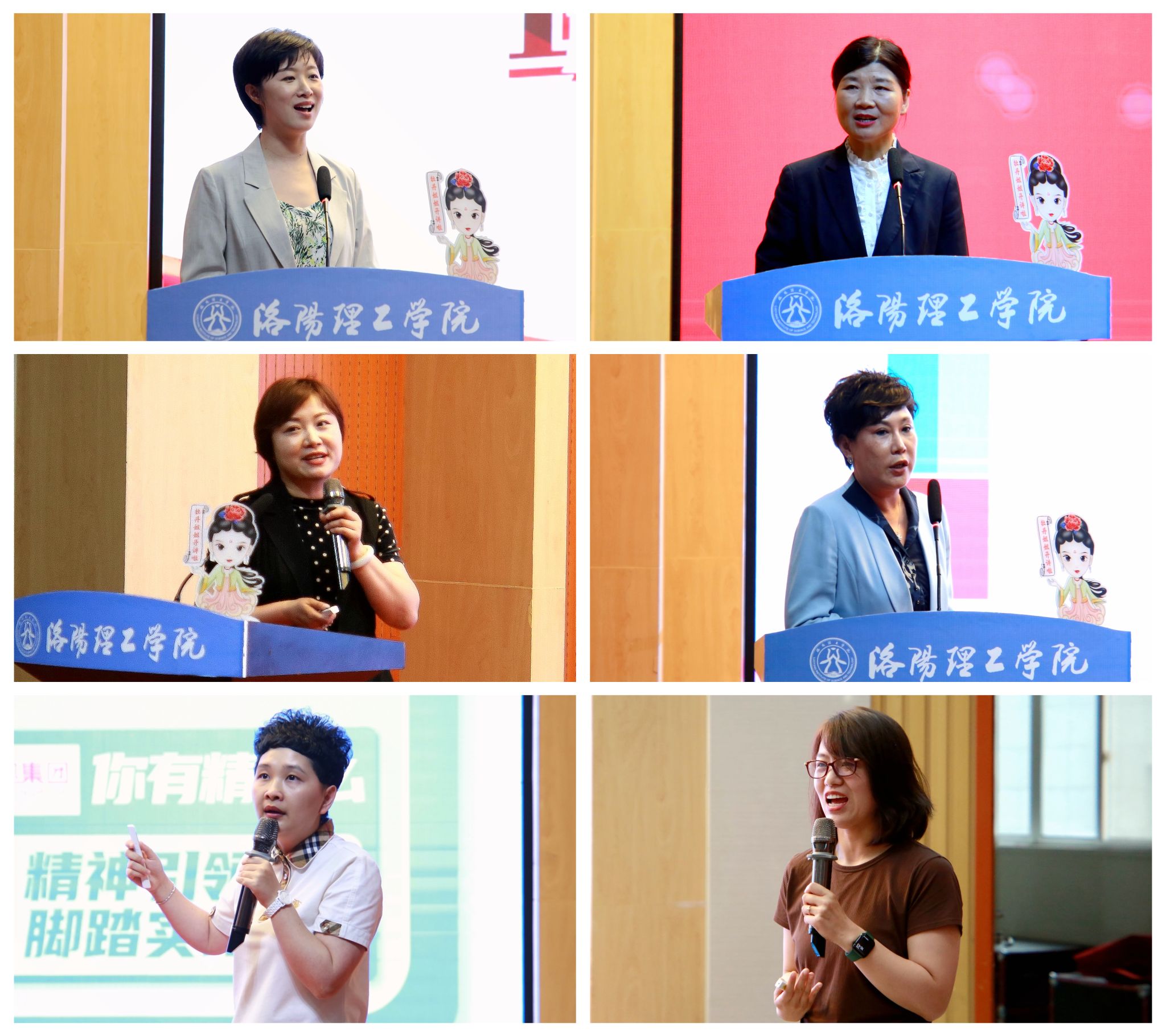 洛阳市委党校工业创业创新教研部主任、讲师武婷婷作了《以高质量发展更加积极有为推进洛阳现代化建设》宣讲。洛阳市妇联兼职副主席、京孟种植专业合作社理事长吕妙霞,洛阳汇融会计服务有限公司总经理郭晓梅,河南深蓝静行光电科技有限公司董事长冯瑛,洛阳闪讯电子商务有限公司创始人兼CEO余珊珊,河南一路向南留学咨询有限公司副总经理若宁等五位优秀女企业家,以自身成长经历从职业目标探索、职业发展经验、职业精神培养和创业体验等多个角度为女大学生作了分享,并认真解答了同学们的提问。