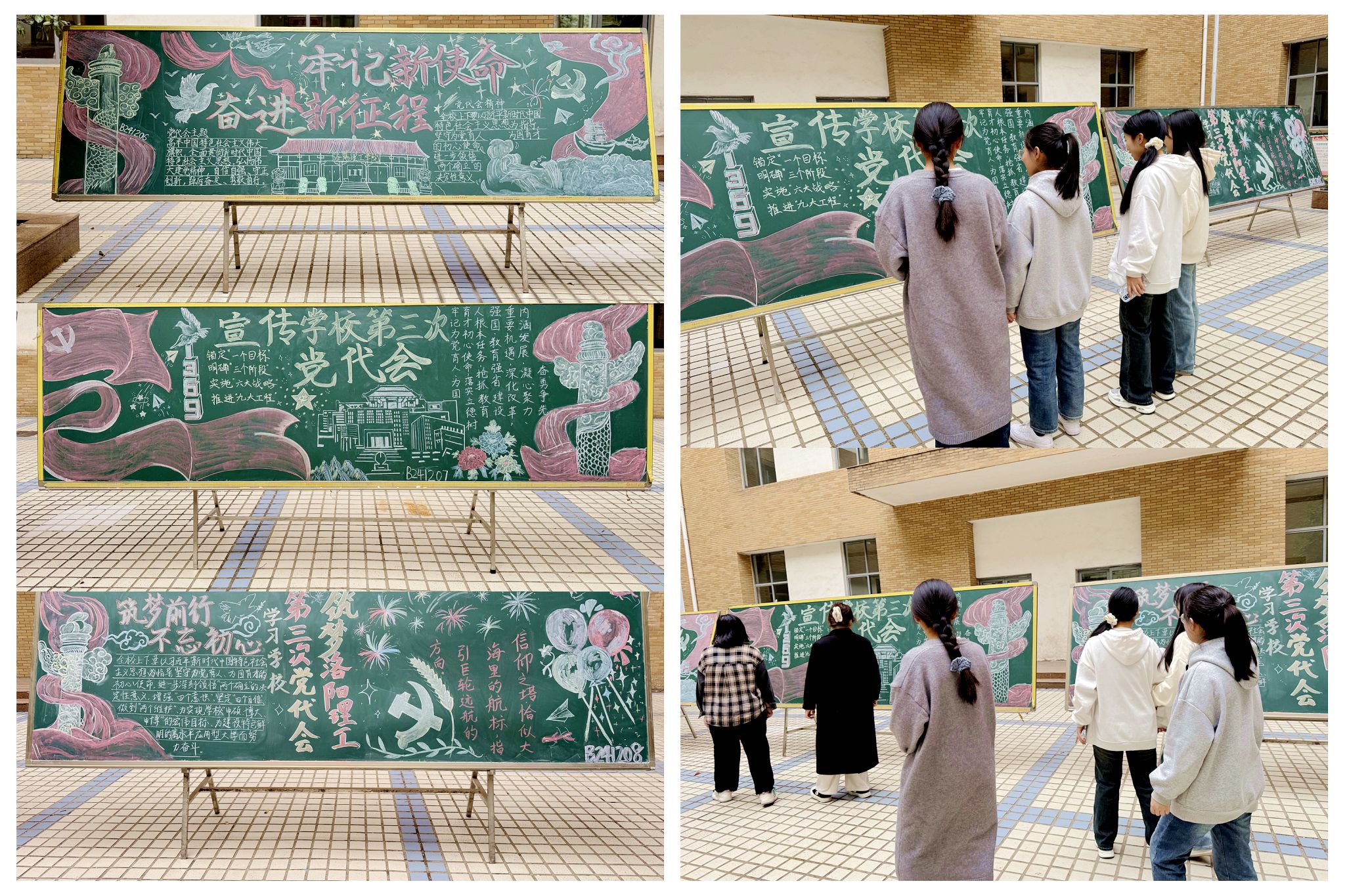 举办了主题为“牢记使命,奋勇争先”的大学生黑板报比赛。